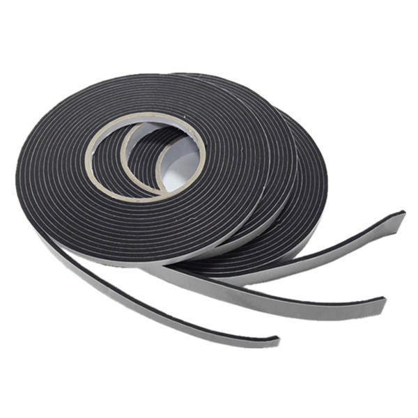 Closed cell PVC sealing foam tape is made by 300-400kg/m3 density PVC foam. The foam sealant combines a closed-cell polyvinyl chloride foam substrate with a pressure-sensitive adhesive on both sides.